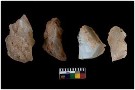 | Description / विवरण | There are n 4 of utilized worked cores. They show multidirectional irregular dominant scar pattern. One of them is tapering at one end. |