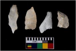 | Description / विवरण | There are n 4 flake cores. All of them are fully fluted flake cores without any trace of crested ridge flakes. Some are tapering at one end and some have sharp edges. |