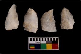 | Description / विवरण | There are n 4 flake cores. All of them are fully fluted flake cores without any trace of crested ridge flakes. Some are tapering at one end and some have sharp edges. |