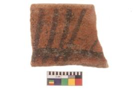 | Description / विवरण | Specimen of potsherd with decorative geometric painting, Type Black on Red ware . |