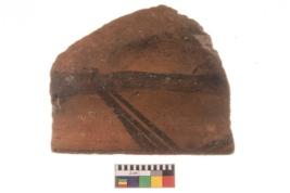 | Description / विवरण | Specimen of potsherd with decorative geometric painting, Type Black on Red ware . |