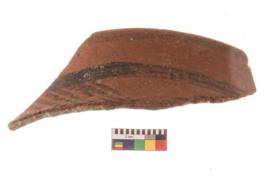 | Description / विवरण | Specimen of potsherd with decorative geometric painting, Type Black on Red ware . |