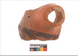 | Description / विवरण | Specimen of potsherd spout with decorative geometric painting, Type Black on Red ware . |