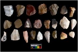 | Description / विवरण | There are n 20 flakes; among them some of them have pointed tip. Also some of them are arc shape with sharp edge. Some are sharp along with side retouching.There are few trapezium shaped flakes as well. |