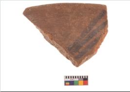 | Description / विवरण | Specimen of potsherd with decorative geometric painting, Type Black on Red ware . |