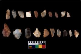 | Description / विवरण | There are n 20 of utilized worked core flakes.They show multi-directional irregular scar pattern. Some are tapering on one end. |