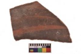 | Description / विवरण | Specimen of black on red ware with decorative geometric Its decorated with two horizontal bands with sets of triple arches painting. |