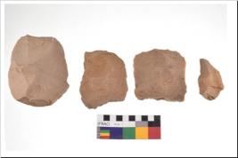 | Description / विवरण | There are n 4 utilized flake cores. There are multidirectional irregular scar pattern on both dorsal and ventral face of the flake cores. One has sharp edges and three have blunted edges. |