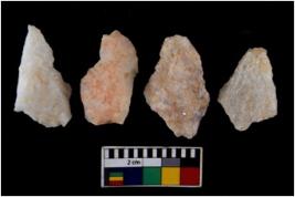 | Description / विवरण | There are n 4 flake cores. All of them are fully fluted flake cores without any trace of crested ridge flakes. Some are tapering at one end and some have sharp edges. |