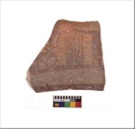 | Description / विवरण | Specimen of black on red ware with decorative geometric Two horizontal bands and traingle diamonds and arches painting. |