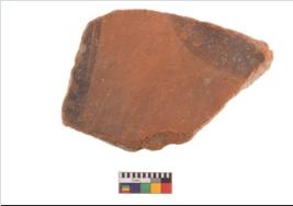 | Description / विवरण | Specimen of potsherd with traces of decorative geometric painting, Type Black on Red ware . |