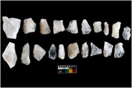 | Description / विवरण | There are n 20 flakes; among them some of them have pointed tip. Also some of them are arc shape with sharp edge. Some are sharp along with side retouching.There are few trapezium shaped flakes as well. |