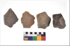 | Description / विवरण | There are n 4 utilized flake cores. There are multidirectional irregular scar pattern on both dorsal and ventral face of the flake cores. Two have blunted edges and two have round edges. |