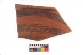 | Description / विवरण | Specimen of potsherd with decorative geometric painting, Type Black on Red ware . |