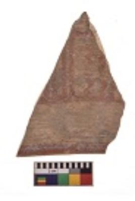 | Description / विवरण | Specimen of red on red ware with decorative geometric Vertical wave lines painting. |