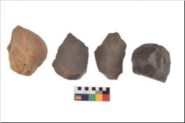 | Description / विवरण | There are n 4 utilized flake cores. There are multidirectional irregular scar pattern on both dorsal and ventral face of the flake cores. Three have blunted edges and one has round edges. |
