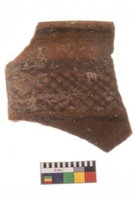 | Description / विवरण | Specimen of potsherd with decorative geometric painting, Type Black on Red ware . |