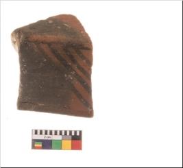 | Description / विवरण | Specimen of potsherd with decorative geometric painting, Type Black on Red ware . |