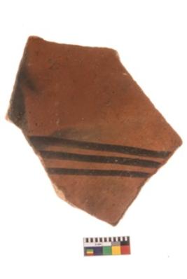 | Description / विवरण | Specimen of potsherd with decorative geometric painting, Type Black on Red ware . |