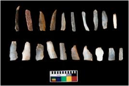 | Description / विवरण | There are n 20 of utilized worked specimens. They show multidirectional irregular scar pattern. Some are tapering at one end and are elongated in shape. |