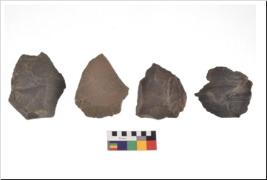 | Description / विवरण | There are n 4 utilized flake cores. There are multidirectional irregular scar pattern on both dorsal and ventral face of the flake cores. Two have sharp edges and two have blunted edges. |
