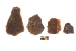 | Description / विवरण | There are n 04 of utilized worked flakes. They show multi-directional irregular scar pattern. One is tapering on one end. |