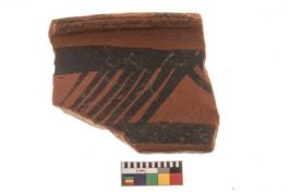 | Description / विवरण | Specimen of potsherd with decorative geometric painting, Type Black on Red ware . |
