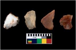 | Description / विवरण | There are n 4 of utilized worked cores. They show multidirectional irregular scar pattern. One is tapering at one end. |