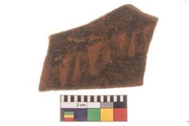 | Description / विवरण | Specimen of potsherd with decorative geometric painting, Type Black on Red ware . |