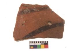 | Description / विवरण | Specimen of potsherd with traces of decorative geometric painting, Type Black on Red ware . |