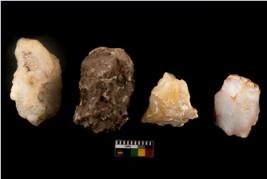| Description / विवरण | There are n 4 of utilized worked cores. There are multidirectional irregular dominant scar pattern on both dorsal and ventral side. They have sharp edges. One of chalcedony and three of quartz. |