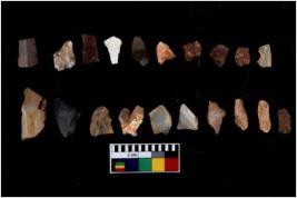 | Description / विवरण | There are n 20 of utilized worked core flakes.They show multi-directional irregular scar pattern. Some are tapering on one end. |