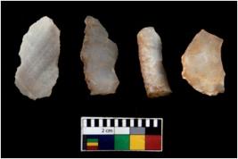 | Description / विवरण | There are n 4 of utilized worked cores. They show multidirectional irregular scar pattern and broken tip. |