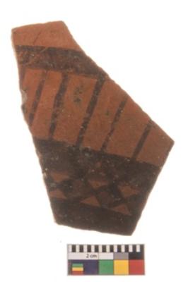 | Description / विवरण | Specimen of potsherd with decorative geometric painting, Type Black on Red ware . |