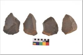 | Description / विवरण | There are n 4 utilized flake cores. There are multidirectional irregular scar pattern on both dorsal and ventral face of the flake cores. Two have flat base and two are tapering at one end. |