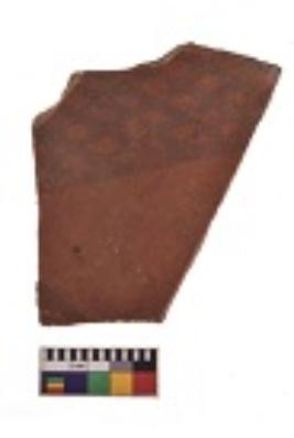 | Description / विवरण | Specimen of black on red ware with decorative geometric Two horizontal bands containing criss-cross pattern painting. |
