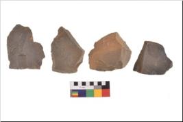 | Description / विवरण | There are n 4 utilized flake cores. There are multidirectional irregular scar pattern on both dorsal and ventral face of the flake cores. Two have sharp edges and two have blunted edges. |