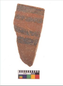 | Description / विवरण | Specimen of potsherd with decorative geometric painting, Type Black on Red ware . |