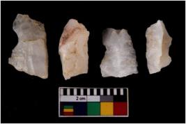 | Description / विवरण | There are n 4 flake cores. All of them are fully fluted flake cores without any trace of crested ridge flakes. Some are tapering at one end and some have sharp edges. |