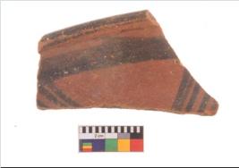 | Description / विवरण | Specimen of potsherd with decorative geometric painting, Type Black on Red ware . |