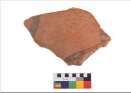 | Description / विवरण | Specimen of potsherd with traces of decorative geometric painting, Type Black on Red ware . |