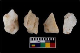 | Description / विवरण | There are n 4 flake cores. All of them are fully fluted flake cores without any trace of crested ridge flakes. Some are tapering at one end and some have sharp edges. |