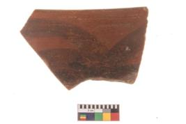 | Description / विवरण | Specimen of potsherd with traces of decorative geometric painting, Type Black on Red ware . |