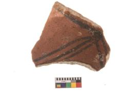 | Description / विवरण | Specimen of potsherd with decorative geometric painting, Type Black on Red ware . |