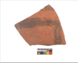 | Description / विवरण | Specimen of potsherd with decorative geometric painting, Type Black on Red ware . |
