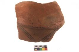 | Description / विवरण | Specimen of potsherd with decorative geometric painting, Type Black on Red ware . |