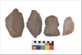| Description / विवरण | There are n 4 utilized flake cores. There are multidirectional irregular scar pattern on both dorsal and ventral face of the flake cores. Three have flat base and one is tapering at one end. |