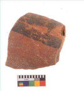 | Description / विवरण | Specimen of potsherd with decorative geometric painting, Type Black on Red ware . |