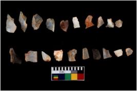 | Description / विवरण | There are n 20 of utilized worked core flakes.They show multi-directional irregular scar pattern. Some are tapering on one end. |