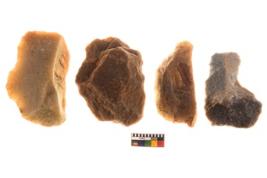 | Description / विवरण | There are n 04 of utilized worked flakes. They show multi-directional irregular scar pattern. One is tapering on one end. |